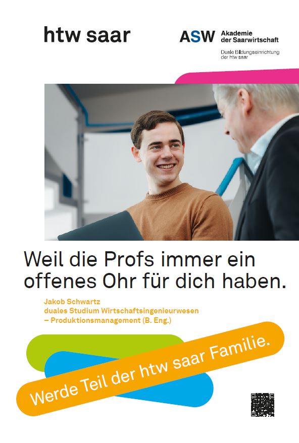 Ein Corporate Blog der wissenschaftlichen Einrichtung der htw saar (Hochschule für Technik & Wirtschaft. Ein Blog über duale Studiengänge im Saarland und dual studieren mit der Wirtschaft für die Wirtschaft. Aktuelles und Wissenswertes über das Duale Studieren im Saarland und das Angebot von dualen Studiengänge der ASW.
